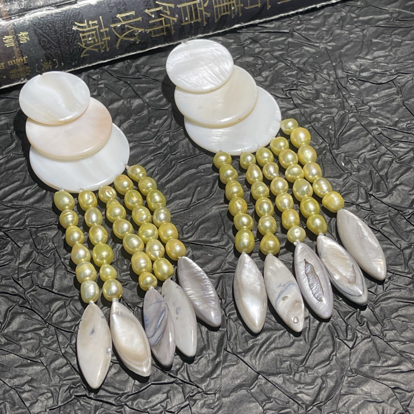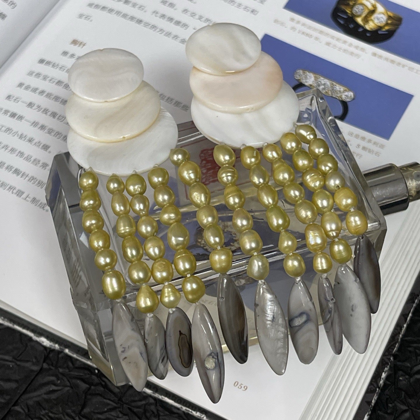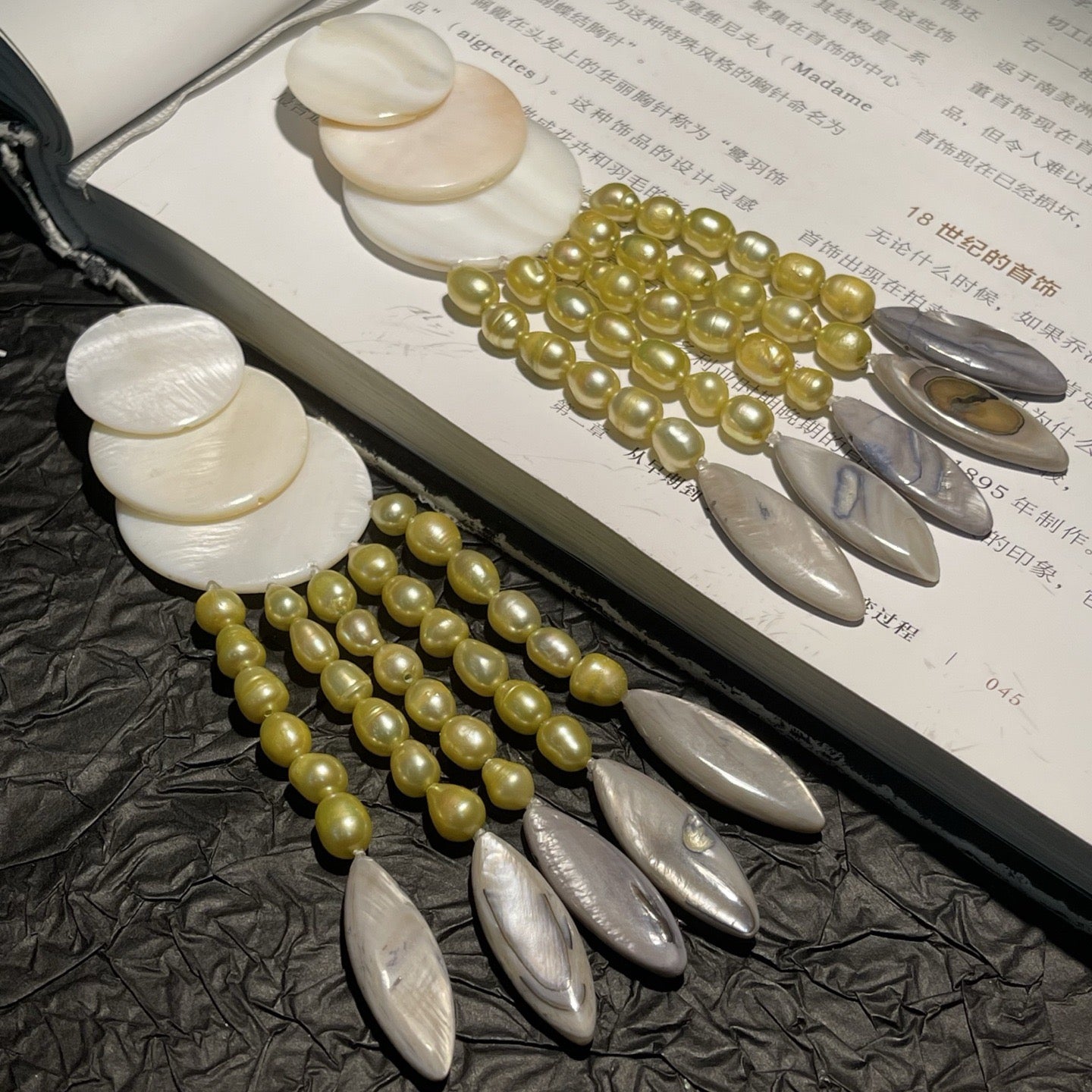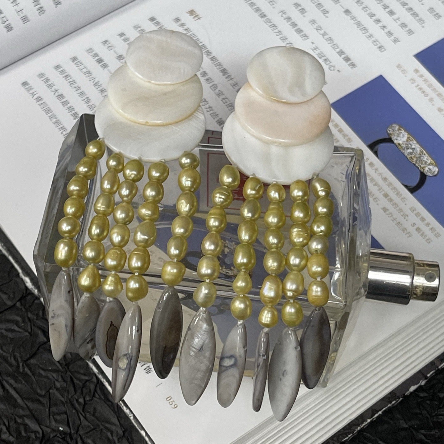 [E]. Windborne Vintage - A niche, minimalist, luxurious and artistic style freshwater pearl combination small stud earrings