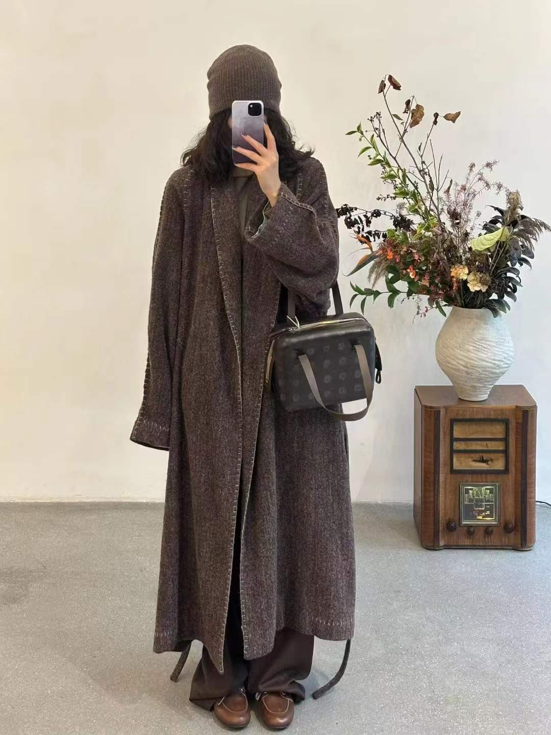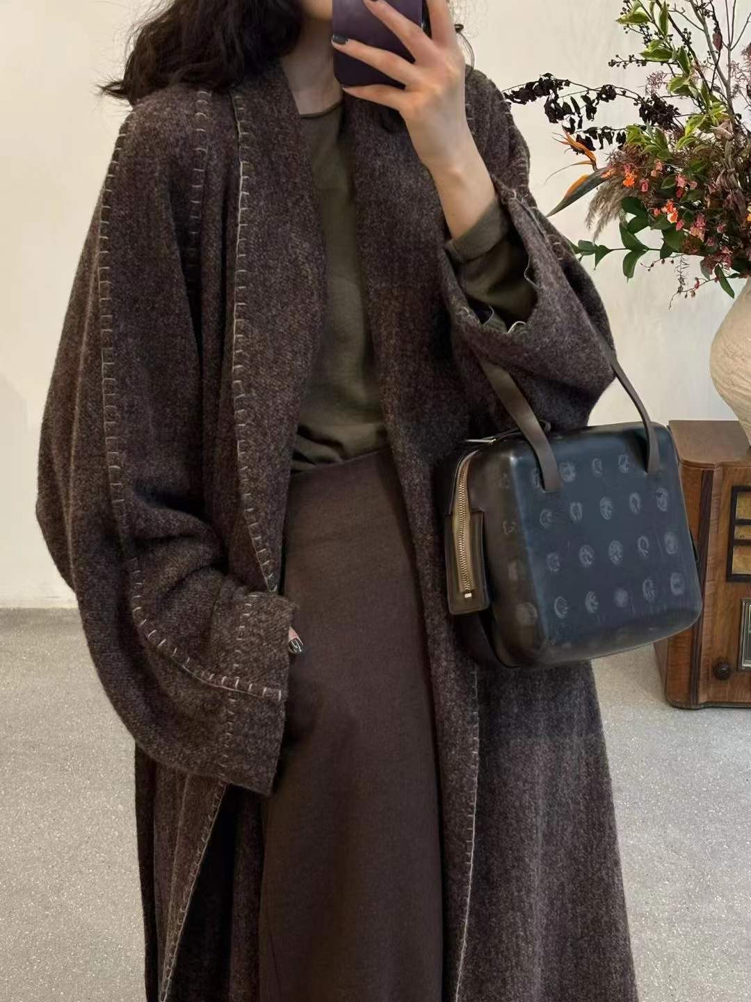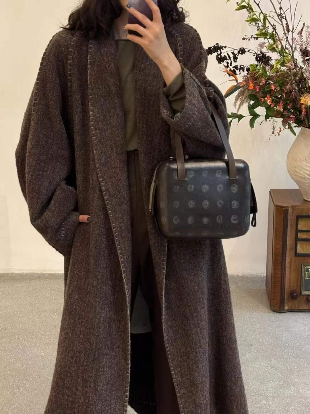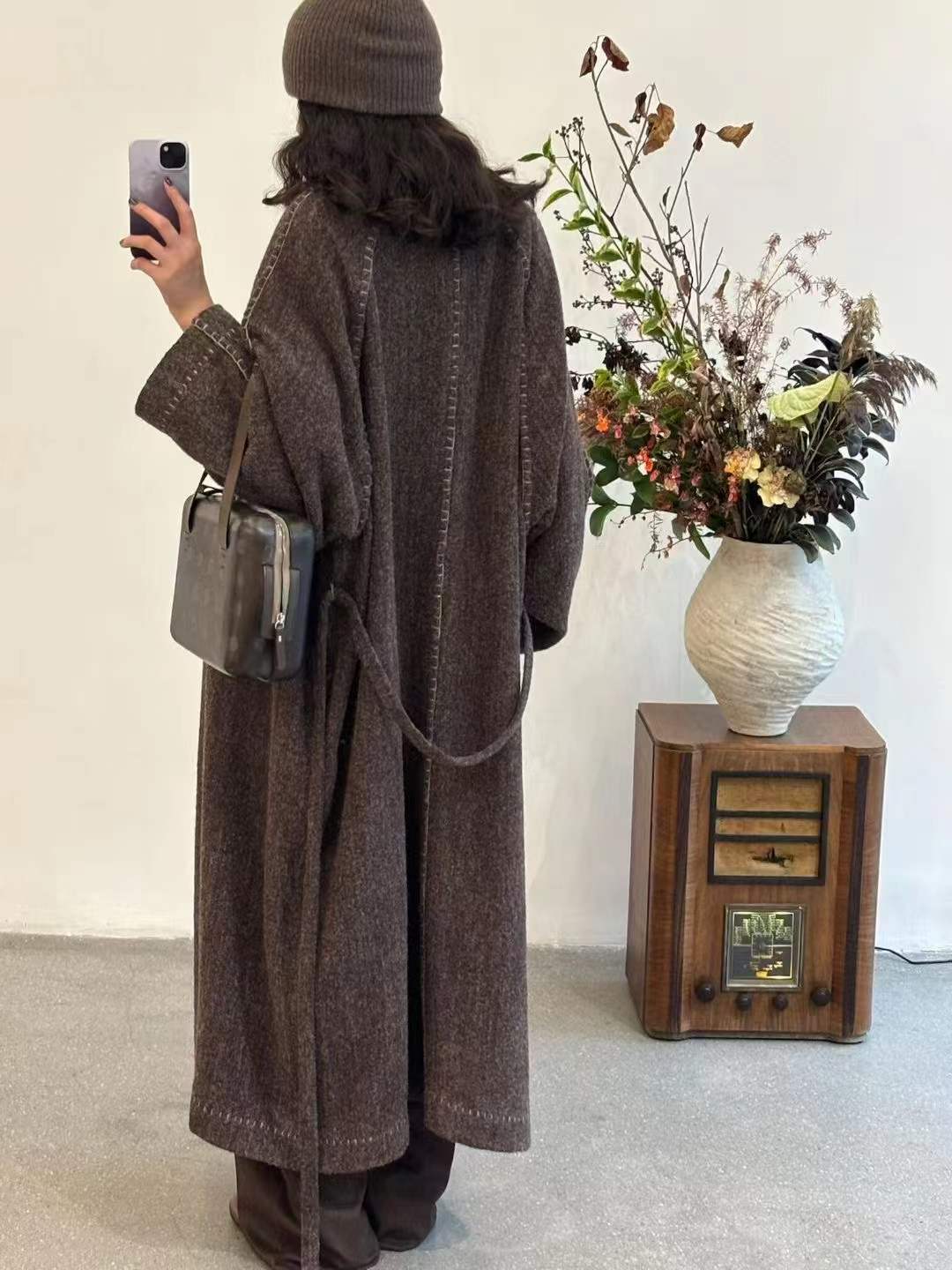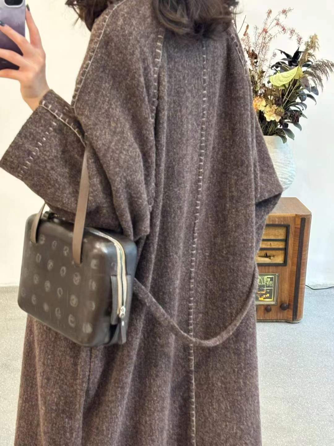 Her beauty lies in a lazy elegance. Each stitch is placed by hand, with artisanal braided trims framing the cuffs and neckline, adding a touch of organic charm.N It's all about the relaxed, handcrafted feel. We finished the neckline and cuffs with a unique braided technique, all done by hand to create that effortless beauty.