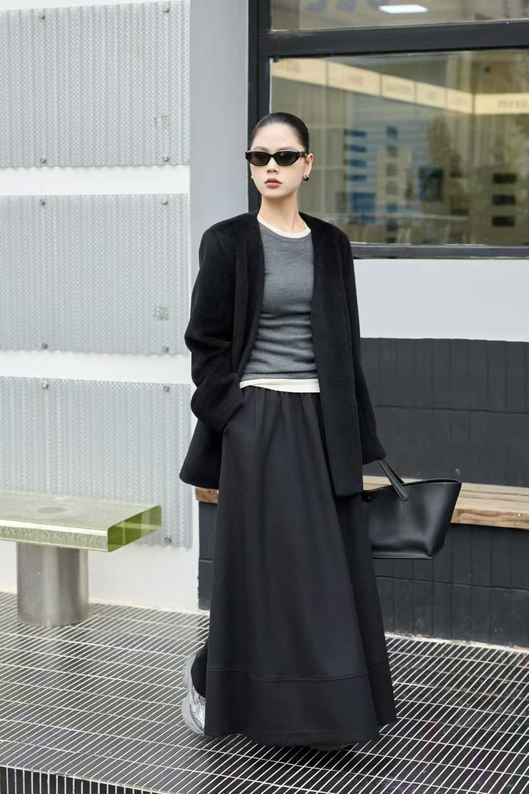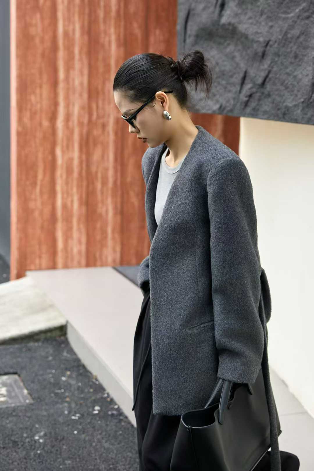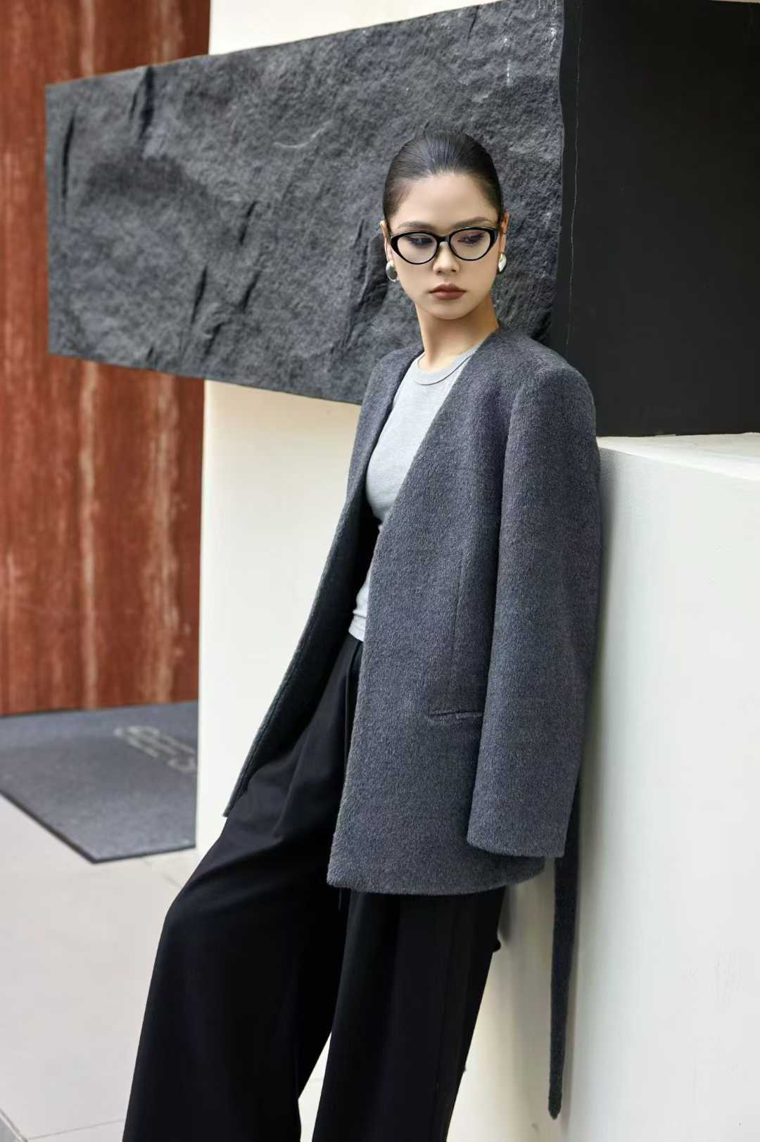 Introducing the E Suri Alpaca Wide-Cut Blazer, a masterpiece of both style and comfort. This blazer is crafted from luxurious Suri alpaca fabric, renowned for its unique nap and exceptionally soft texture. It promises to envelop you in warmth while maintaining an elegant appearance, making it a must-have addition to your wardrobe.