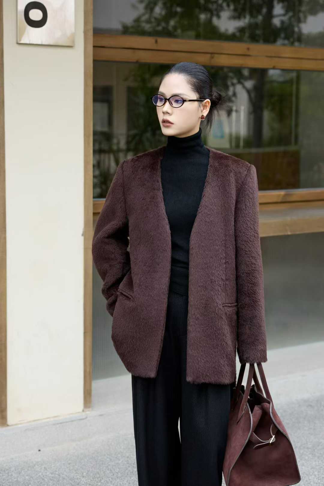 This is more than just a coat; it's a breathable piece of wearable art that elevates any outfit. Pair it with tailored trousers or a relaxed pair of jeans – the options are endless! Embrace the beautiful artistry of Suri alpaca and make a statement with this stunning blazer.
