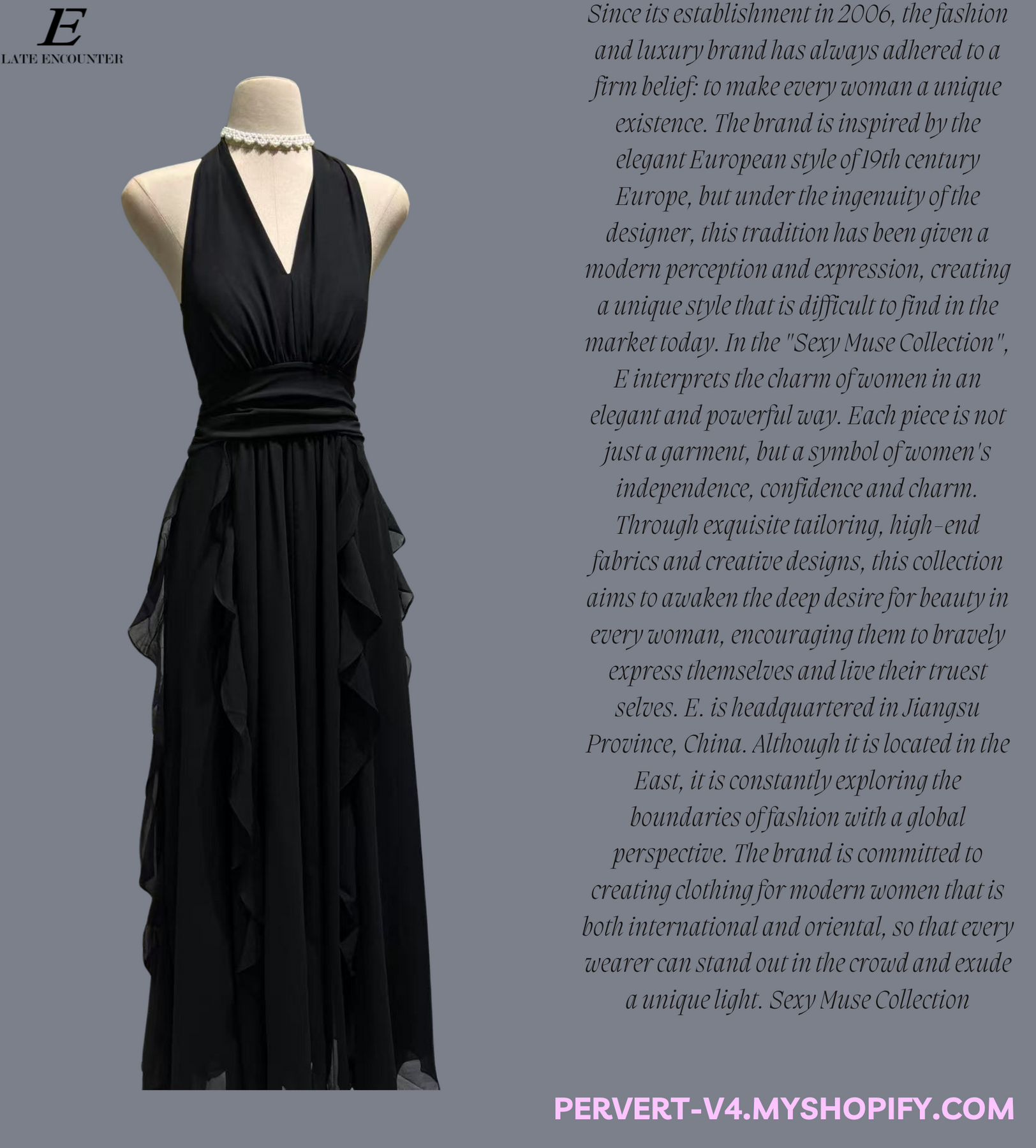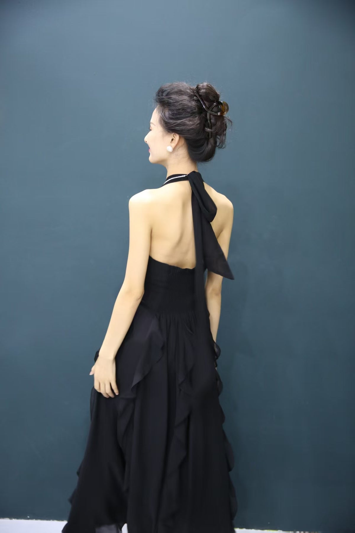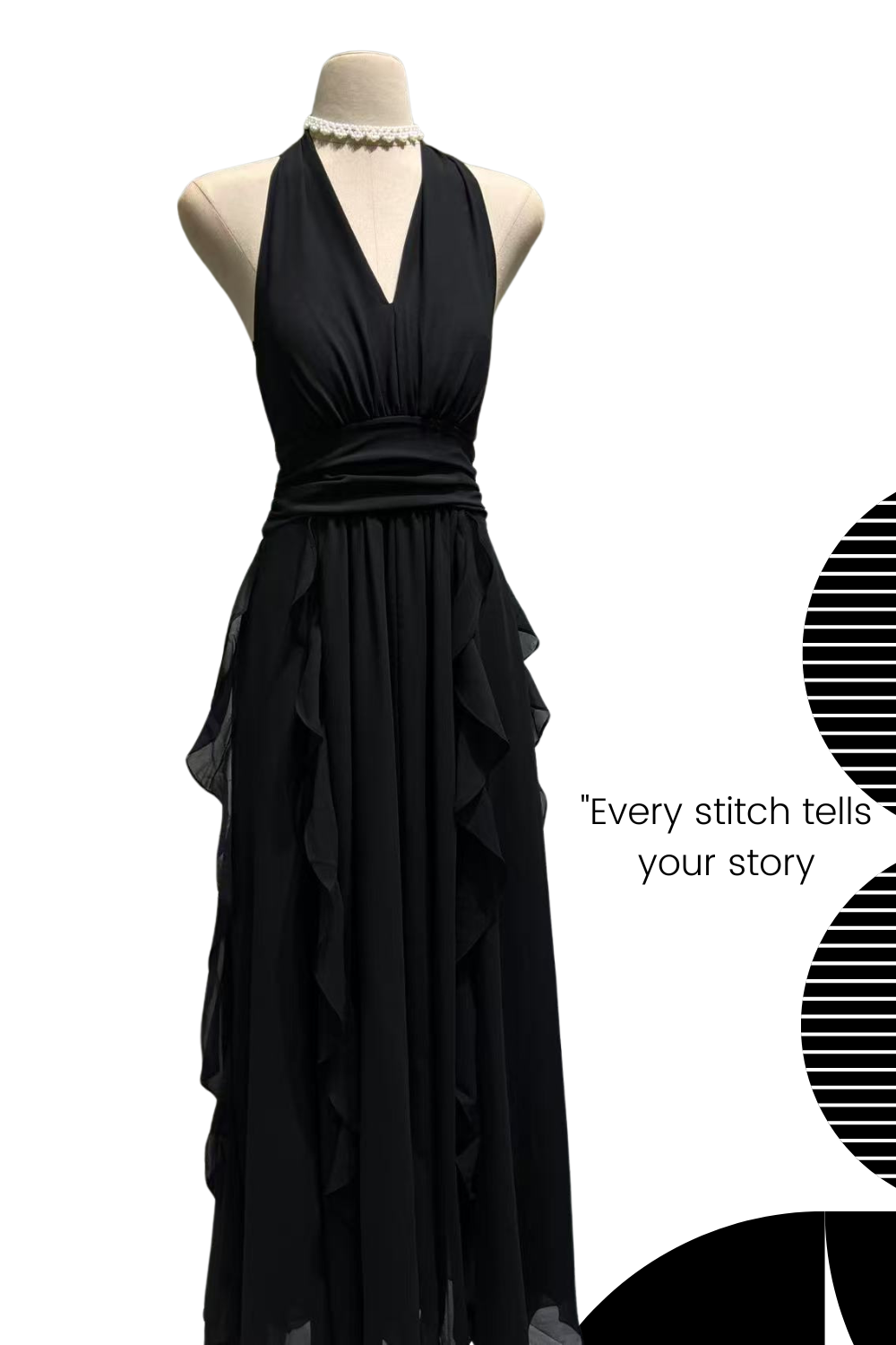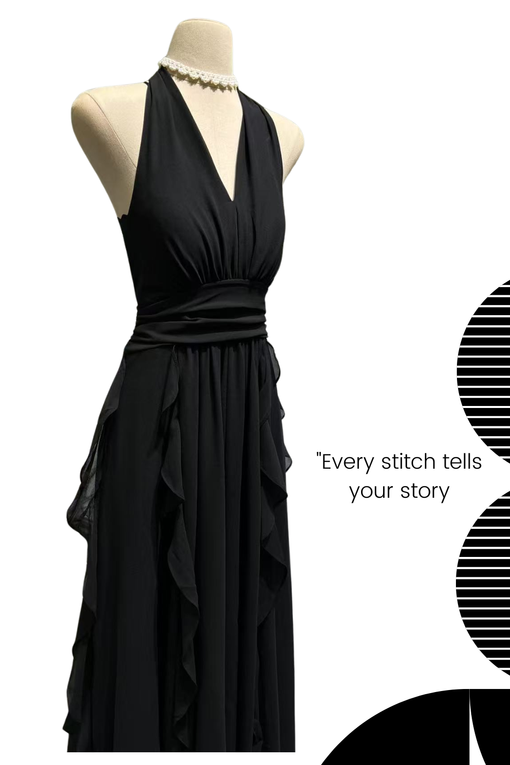 Elegant Pure Black Georgette Evening Gown for Women - Sizes S, M, L, XL - High-End Design - 【E】