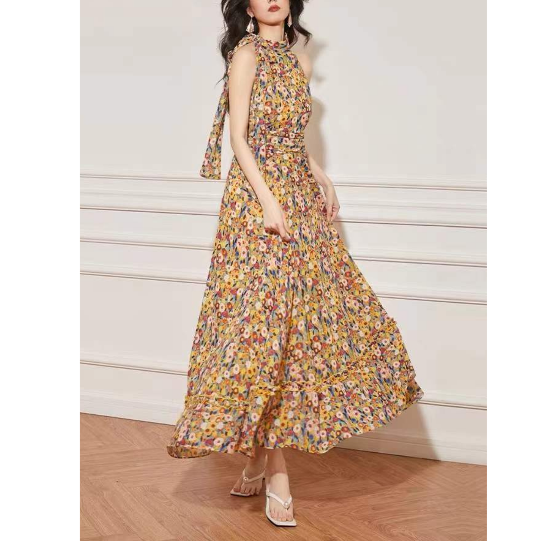 Crafted from premium ER/Designer georgette hand-pleated fabric, this romantic women's dress is lightweight and breathable, ensuring comfort all day long. The enchanting floral print adds a touch of whimsy, making it perfect for summer picnics, brunch dates, or a leisurely stroll in the park.
