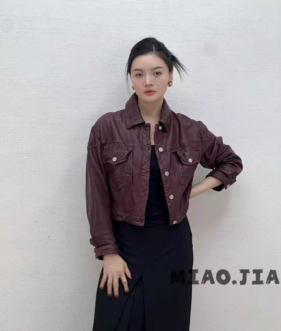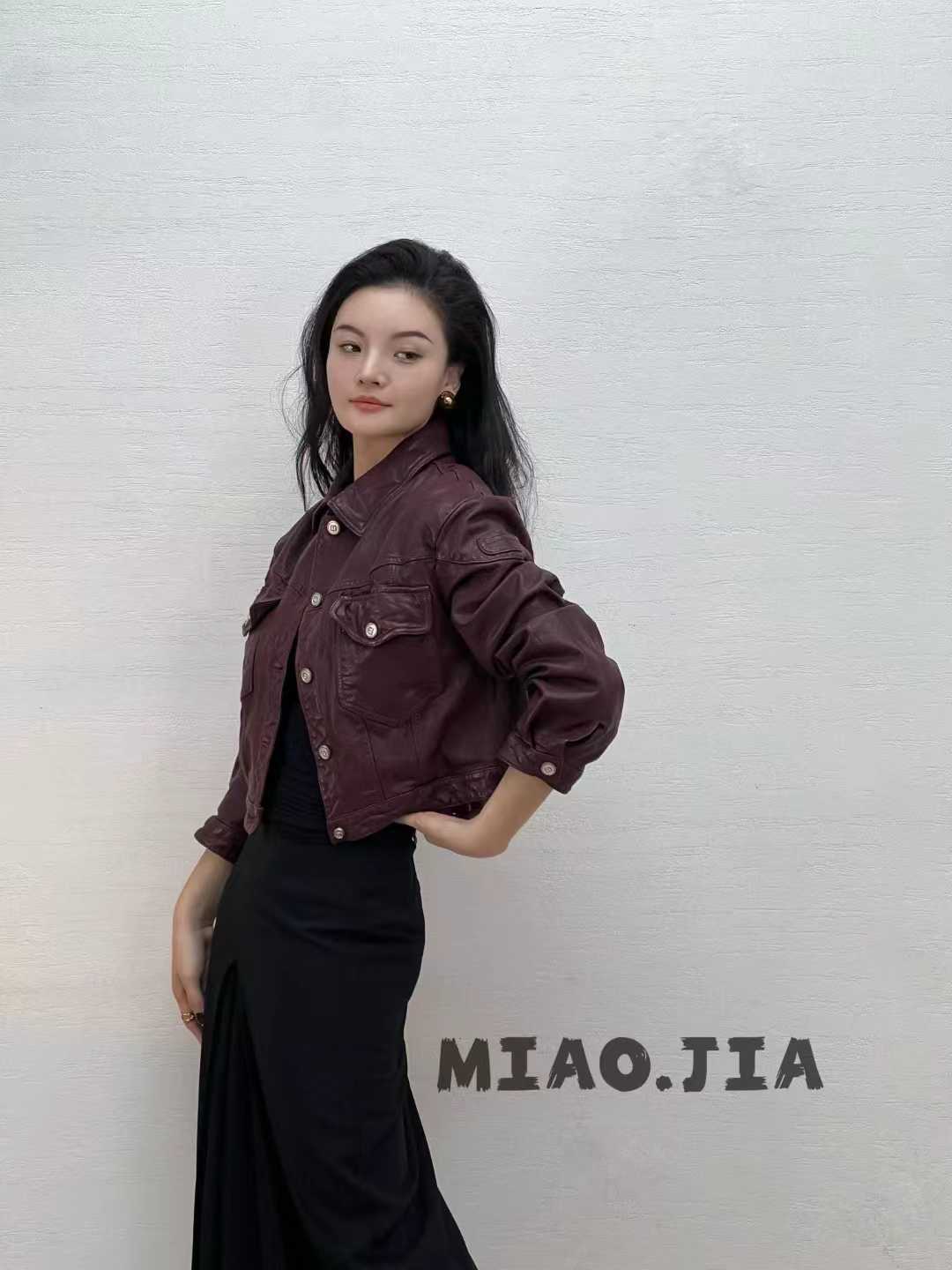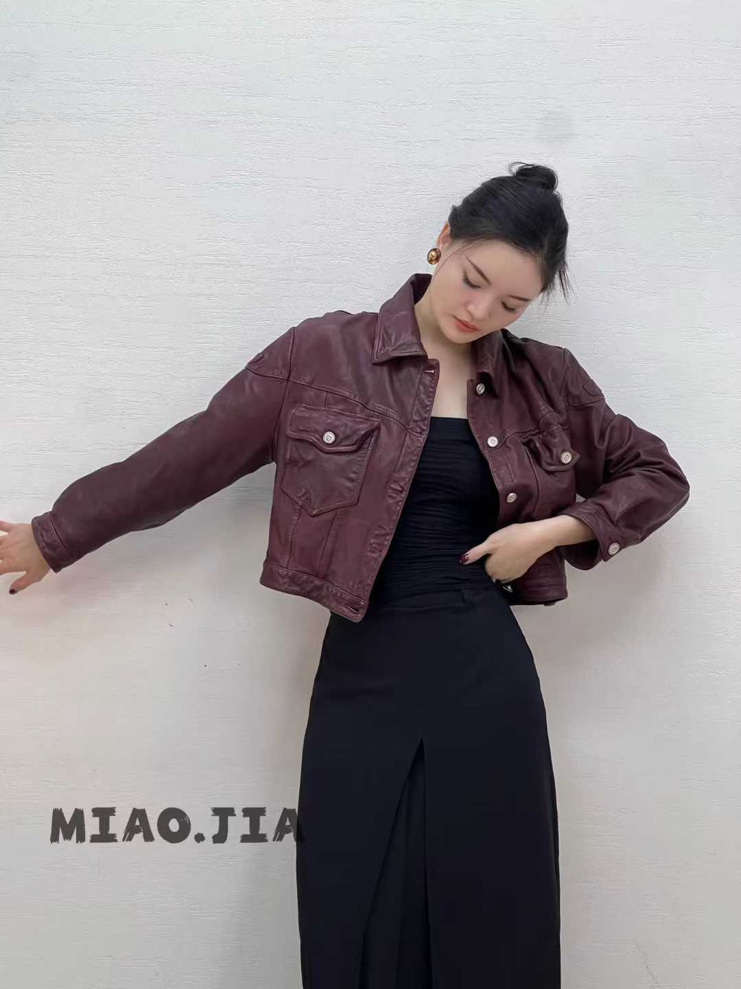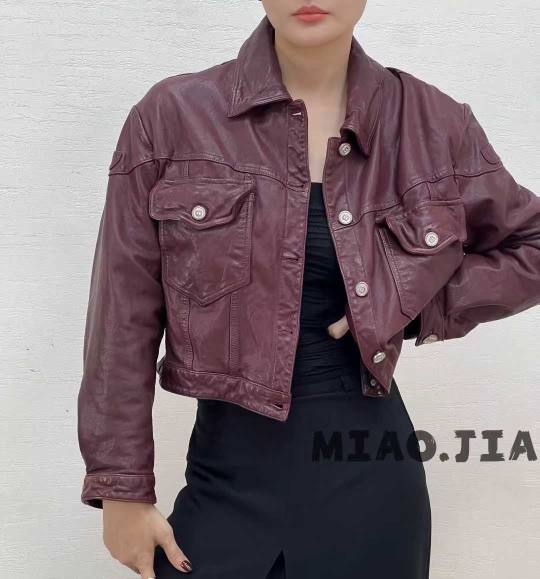 A cropped lamb leather jacket, crafted for dual identities. Embrace the classic in timeless black, or make a statement in passionate crimson. The supple lapel and luxurious hide create a piece that is both powerful and effortlessly soft.Cropped & Chic. Supremely Soft Lamb Leather.