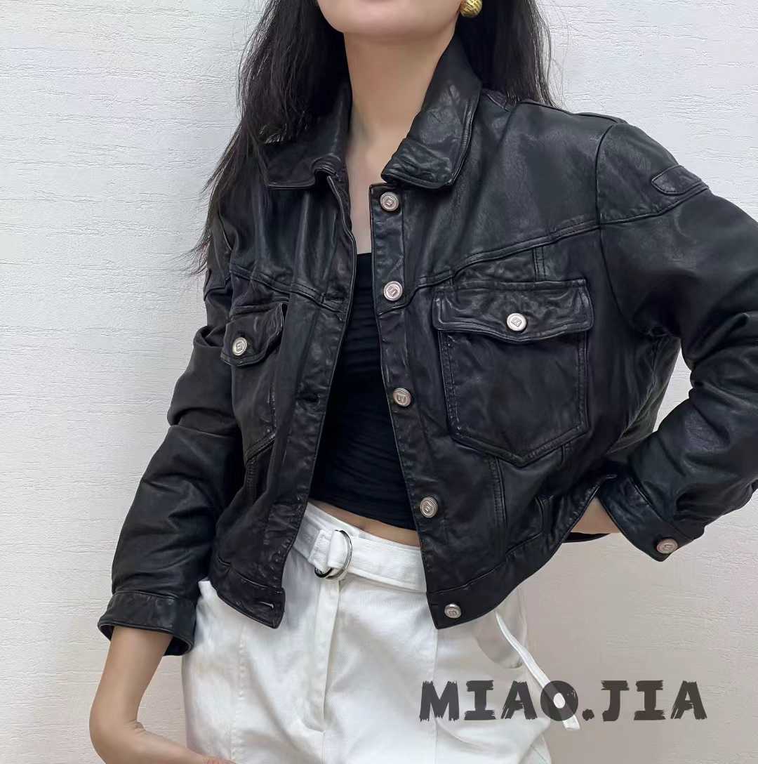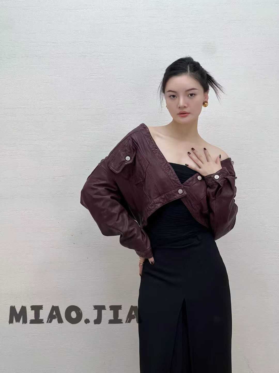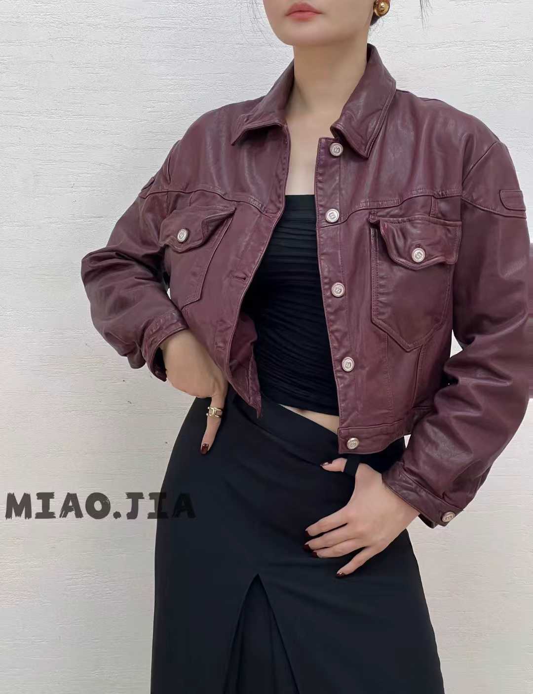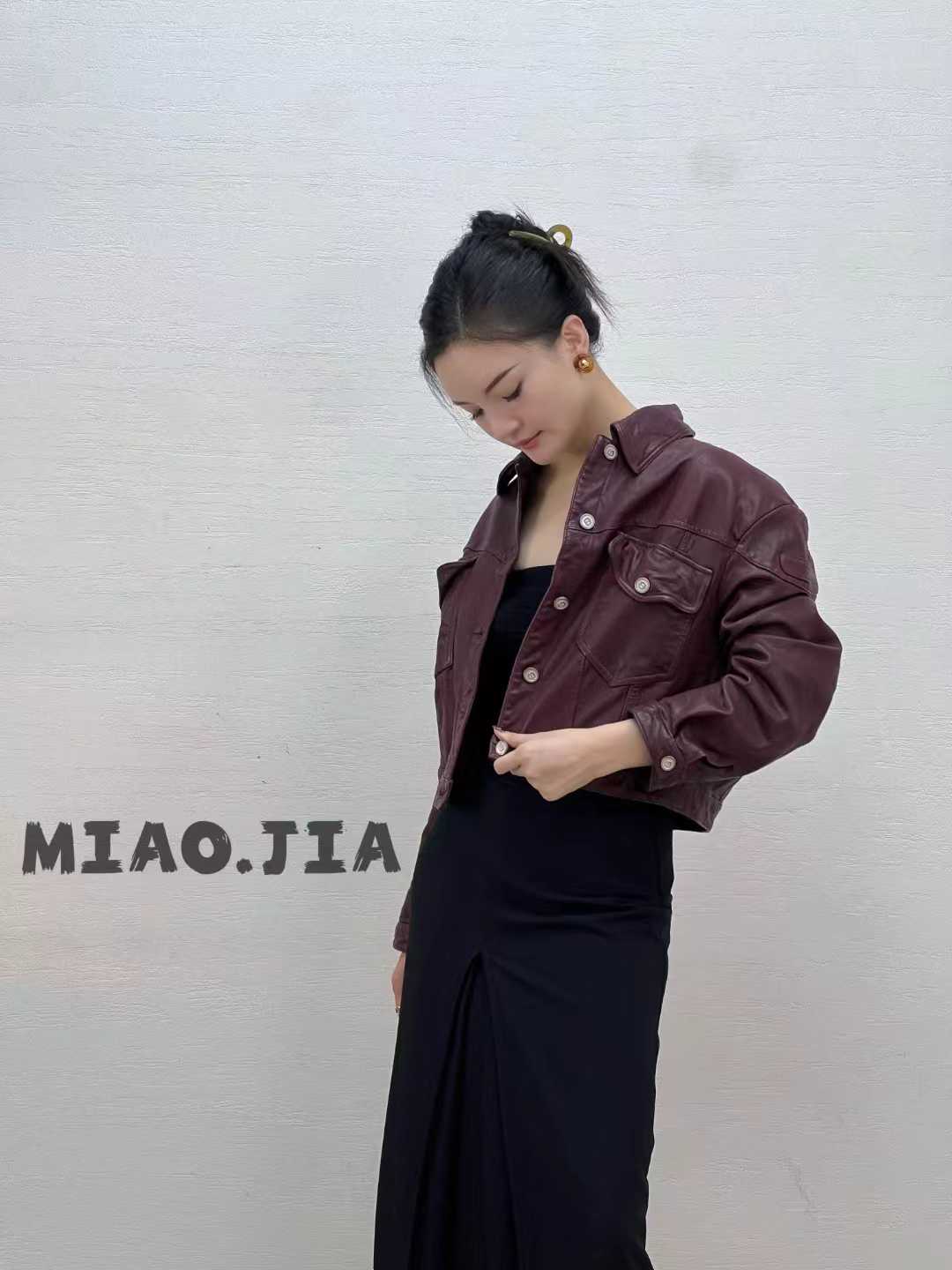 A cropped lamb leather jacket, crafted for dual identities. Embrace the classic in timeless black, or make a statement in passionate crimson. The supple lapel and luxurious hide create a piece that is both powerful and effortlessly soft.Cropped & Chic. Supremely Soft Lamb Leather.