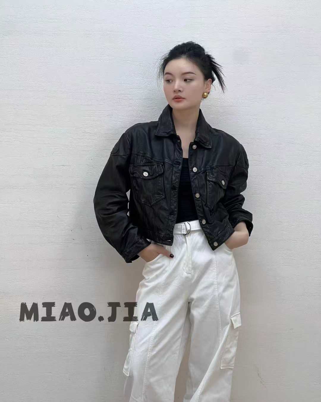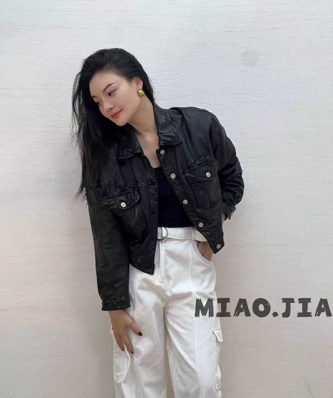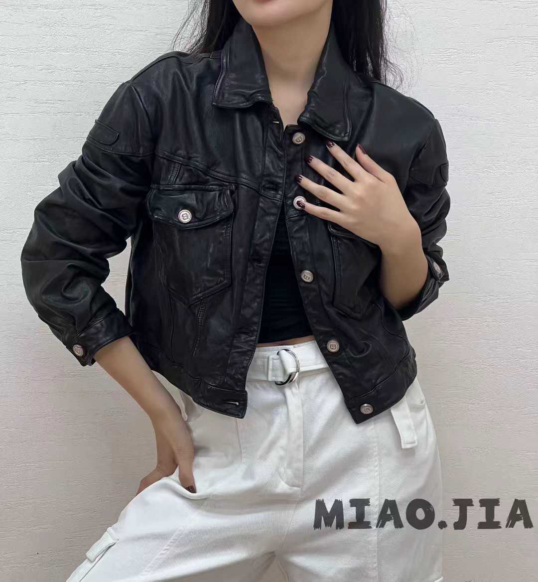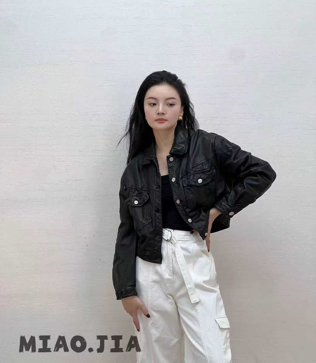 A cropped lamb leather jacket, crafted for dual identities. Embrace the classic in timeless black, or make a statement in passionate crimson. The supple lapel and luxurious hide create a piece that is both powerful and effortlessly soft.Cropped & Chic. Supremely Soft Lamb Leather.