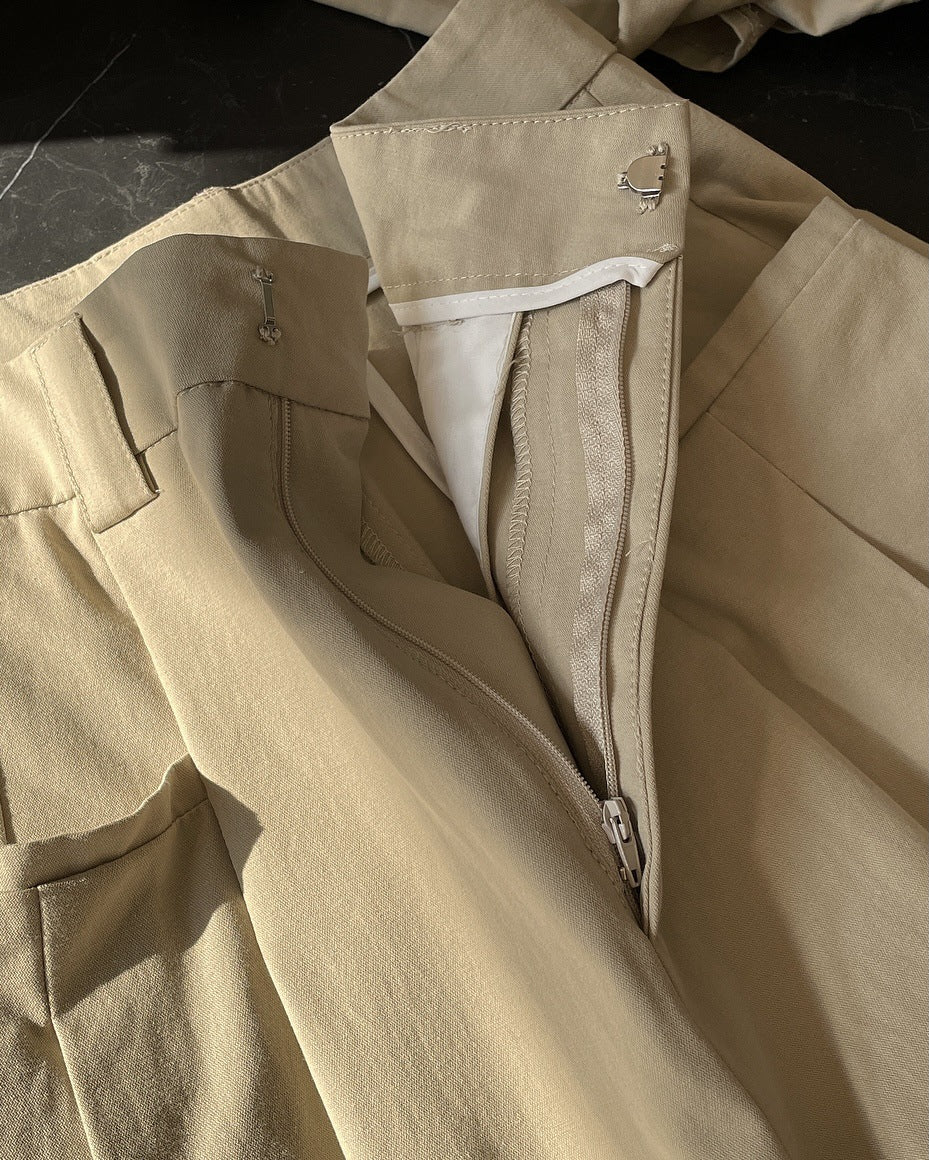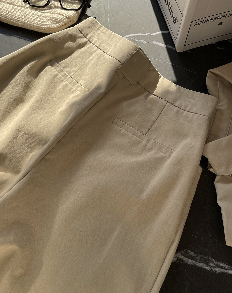 Our black and khaki color options make these trousers easy to mix and match with your favorite tops and footwear. The exquisite hemming process adds durability, while the neat wiring provides a structured look without losing comfort. No need for ironing—these trousers maintain their sleek appearance throughout the day.