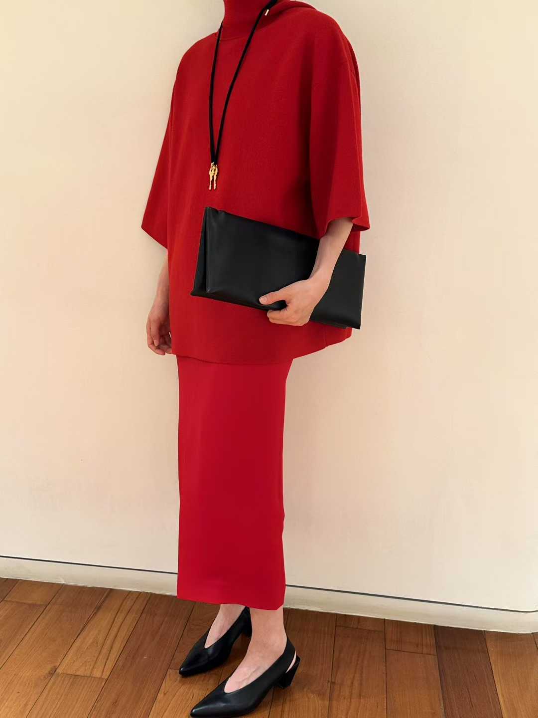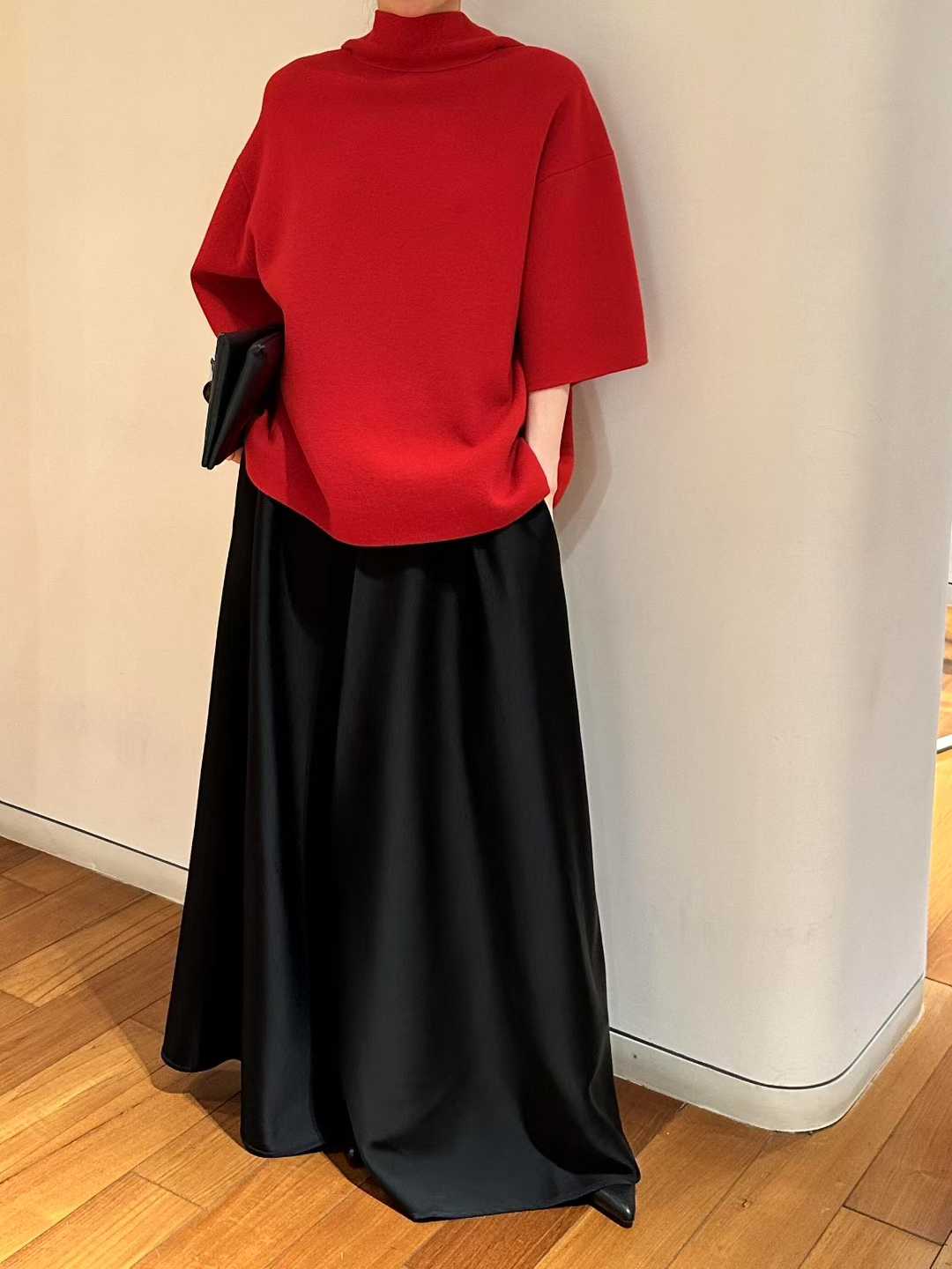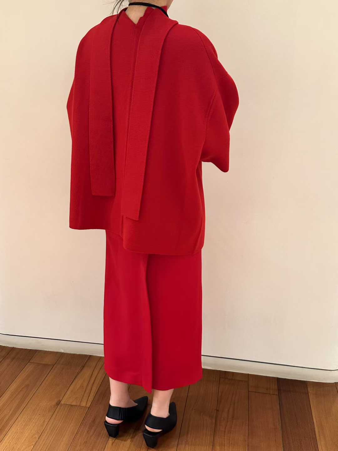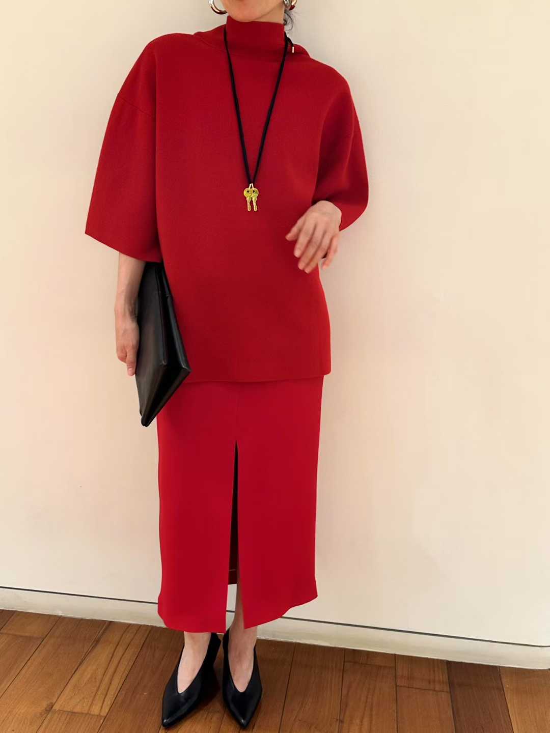 E-ICICLE Minimalist knit top in French classic red color, combining chic aesthetics and practicality for modern fashion lovers.