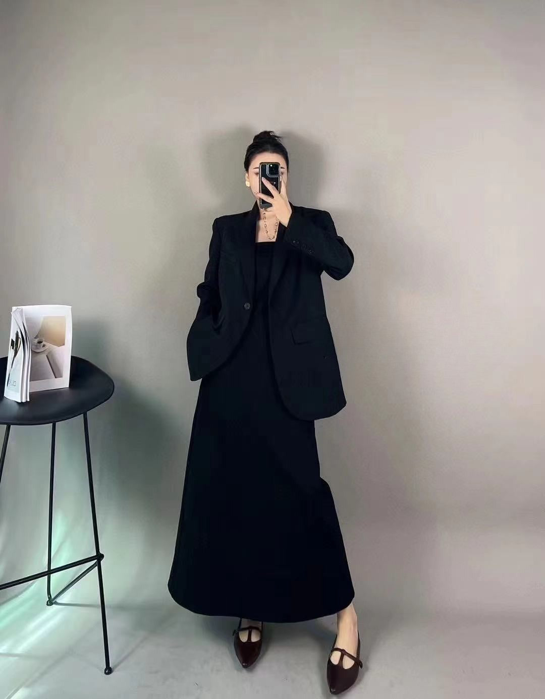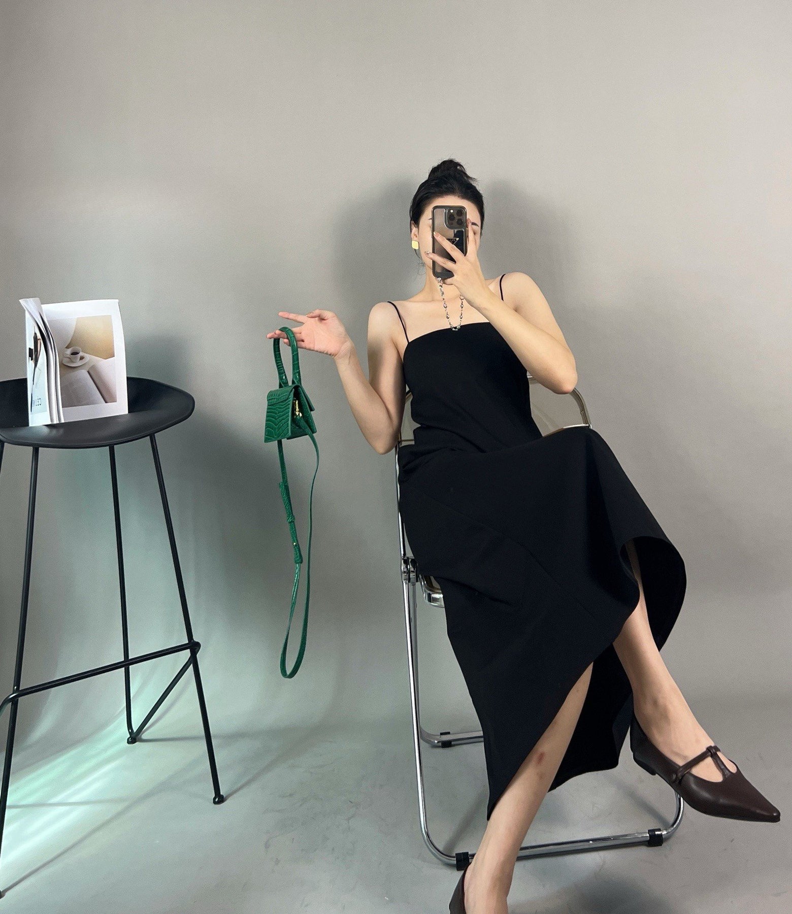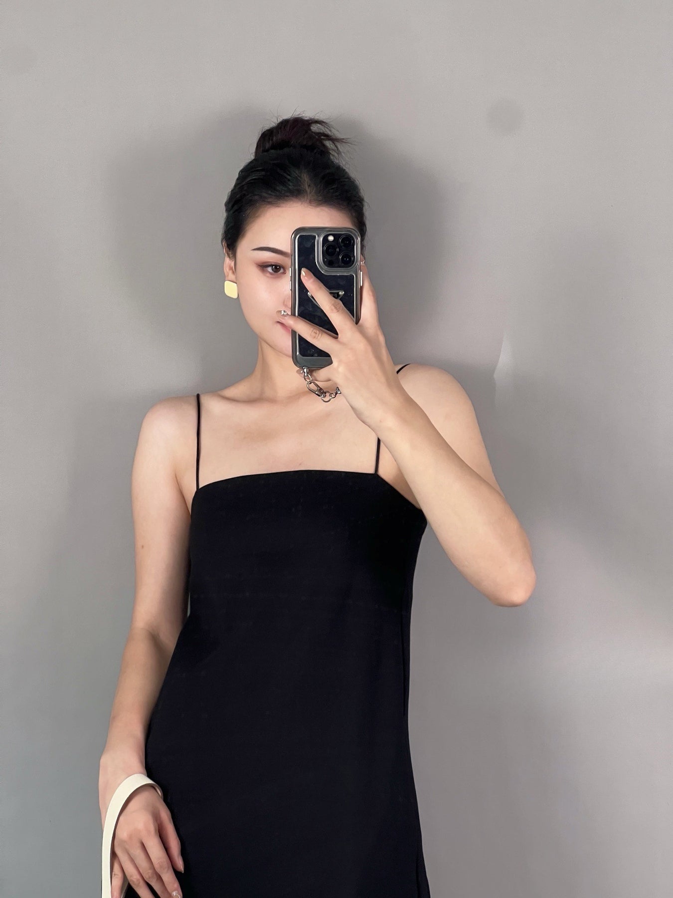 Crafted from high-quality, breathable fabric, this black fitted dress enhances all body shapes. The adjustable straps allow for a customizable fit, ensuring you feel comfortable and confident, no matter the season. The exquisite texture radiates light luxury, making this dress a must-have in your fashion collection.